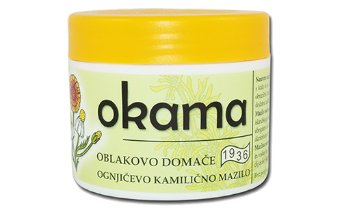 Okama je kremno mazilo in vsebuje dobro premišljen izbor izvlečkov zelišč, ki se med seboj dopolnjujejo. Nosilni zelišči sta ognjič in kamilica, za kateri je znano, da imata blagodejni učinek na kožo in se tradicionalno uporabljata proti raznim kožnim težavam. S svojo bogato sestavo izredno dobro deluje na vse pojave na koži, preprečuje probleme s kožo, spodbuja njeno hitrejšo regeneracijo in jo intenzivno zaščiti.